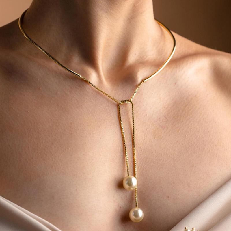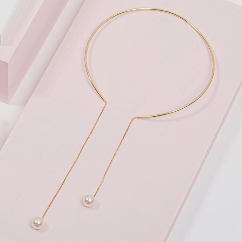 チョーカー レディース オープン パール タッセル ゴールド シルバー ネックレス 鎖骨 華奢 上品 シンプル エレガント 欧米風 クールスタイル アクセサリー ジュエリー 春夏 普段使い 通勤