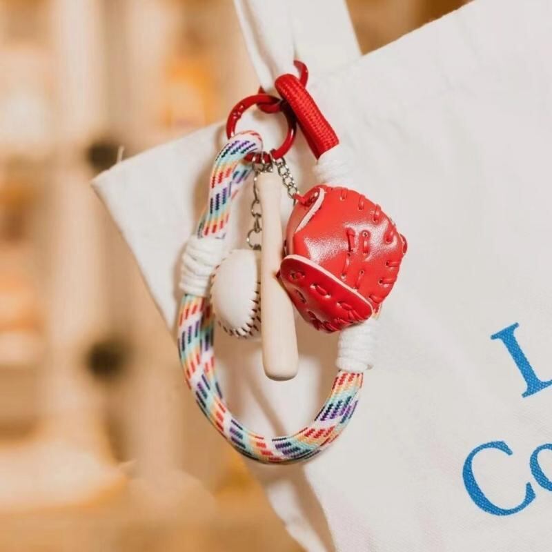 バッグチャーム キーホルダー カップル 野球デザイン インスタ風 韓国風 個性的 クリエイティブ 登山ロープ 合成皮革 車の鍵 ストラップ
