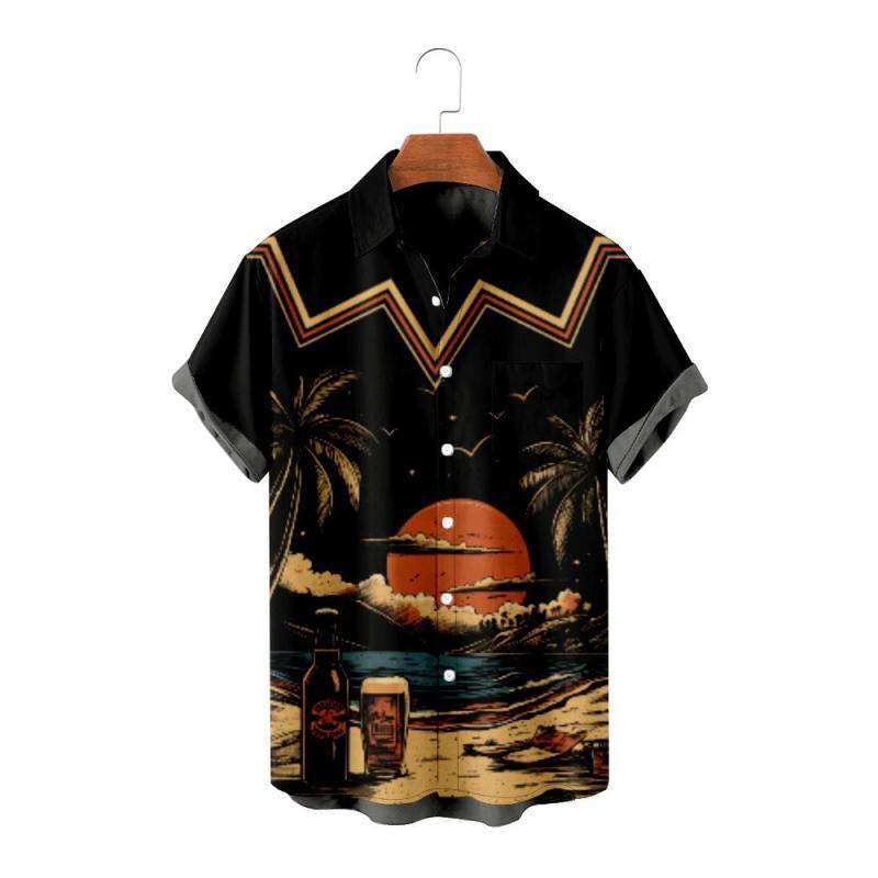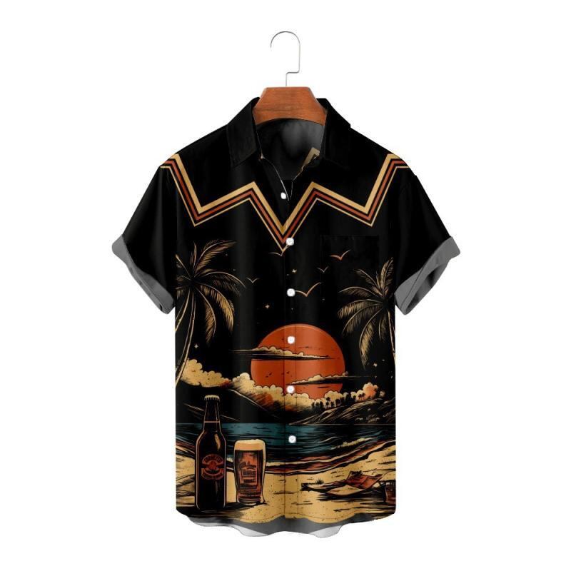 シャツ メンズ クルーネック 半袖 ビール柄 総柄 3Dデジタルプリント ゆったり ルーズフィット ポリエステル 抗菌 リゾート ビーチ カジュアル 春夏 トップス 男性用
