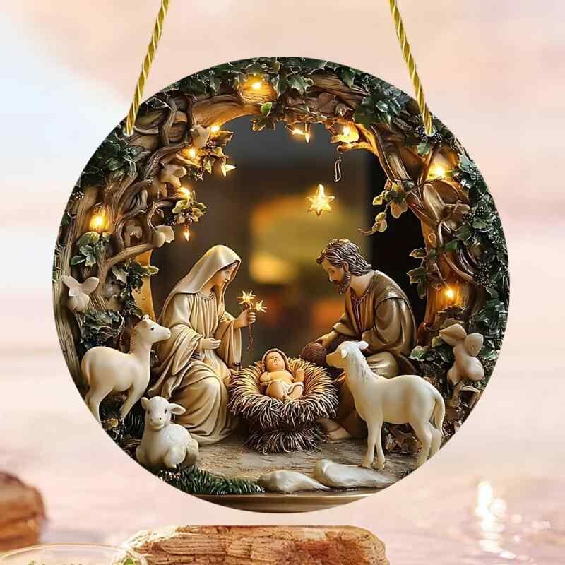 オーナメント 宗教 イエス キリスト 聖母マリア 円形 アクリル 窓飾り ドア飾り 玄関飾り 車内飾り ギフト 贈り物 プレゼント レトロ ヴィンテージ 春夏