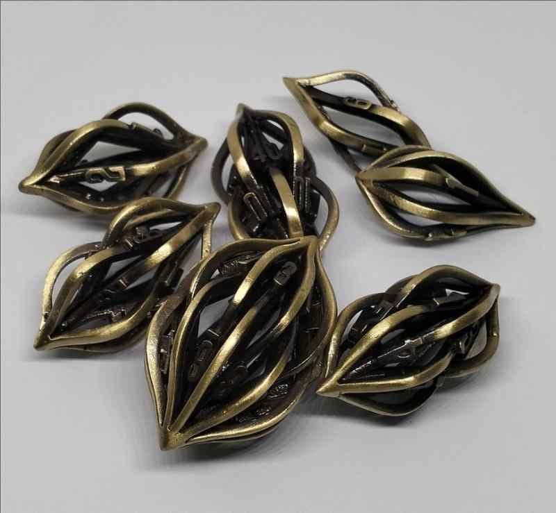 サイコロ 金属製 真鍮製 透かし彫り ホロウデザイン クトゥルフ神話 ダンジョンズ&ドラゴンズ TRPG ボードゲーム用 卓上ゲーム 角形 ゴールド 赤銅 青銅 ガンメタル シルバー