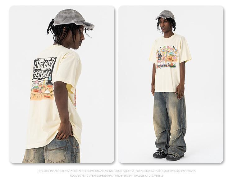 ・カテゴリ: Tシャツ・スタイル: ストリート・主な素材: 綿100%・柄: 英字、幾何学柄・シルエット: ルーズフィット・対象: 大人・タイプ: プルオーバー・ネックライン: クルーネック・袖丈: 半袖・厚さ: 普通・着用シーン: カジュアル・カラー展開: ベージュ・サイズ展開: M、L、XL・袖タイプ: ドロップショルダー・重さ: 約260g・性別: メンズ