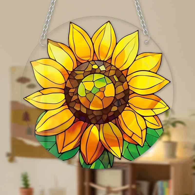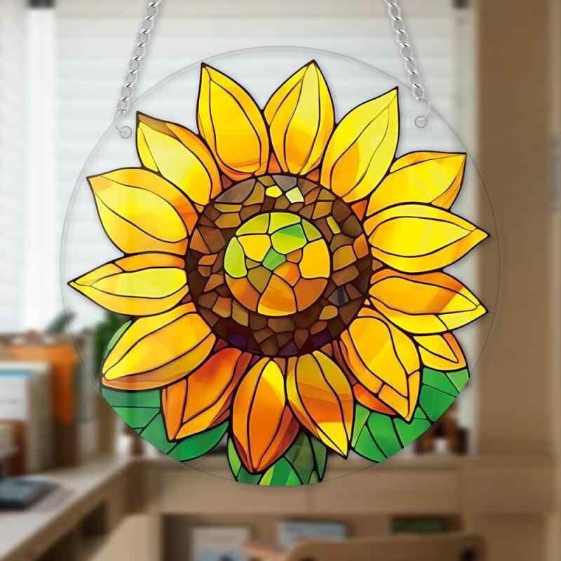 オーナメント 吊り下げ アクリル ひまわり 花柄 円形 カラフル チェーン付き 玄関 ポーチ 庭 ガーデン 室内 インテリア デコレーション オブジェ カントリー調