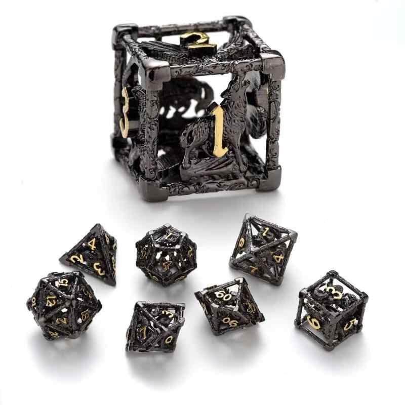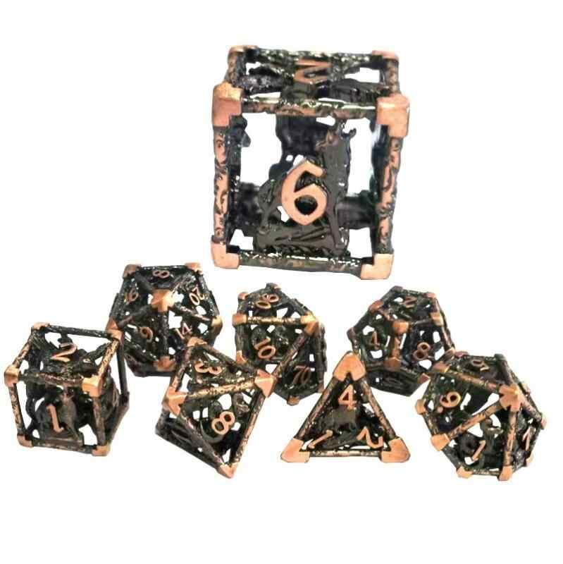 サイコロ ダイス 鷹 蛇 狼 透かし彫り 多面体 真鍮 ロールプレイングゲーム TRPG テーブルゲーム ボードゲーム RPG用 7個セット 角型 古金 古青銅 古紅銅 ガンメタルブラック
