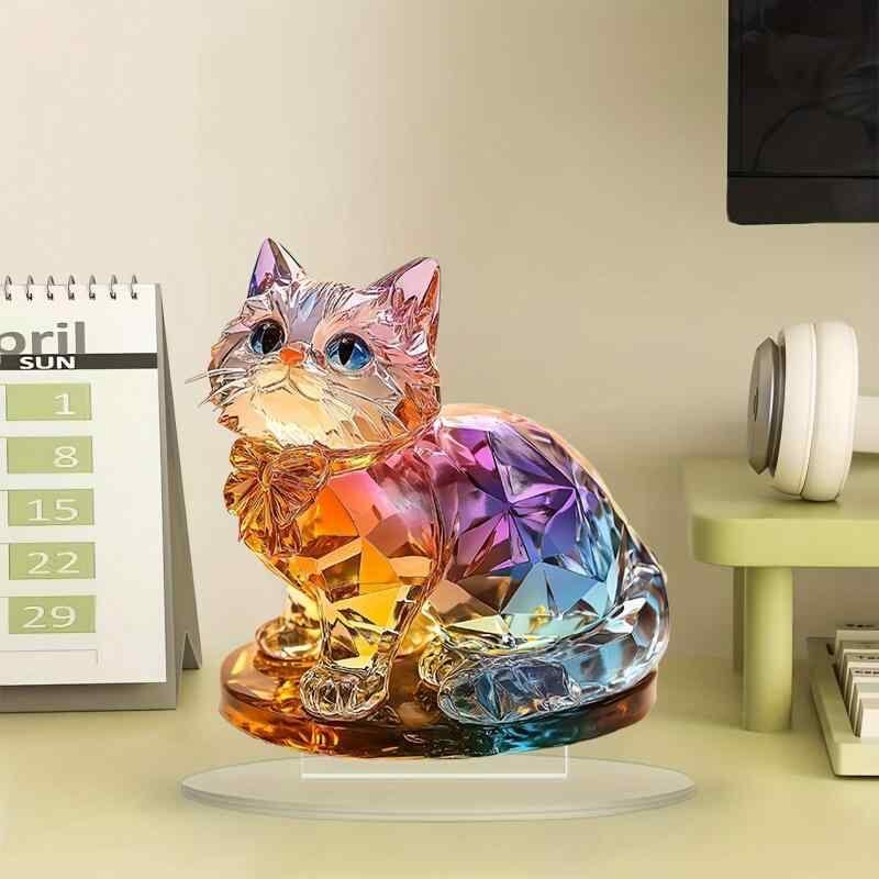 インテリア雑貨 かわいい カラフル 猫 2D アクリル 卓上置物 リビング 寝室 書斎 ホームデコレーション 部屋飾り おしゃれ ユニーク 動物モチーフ オブジェ