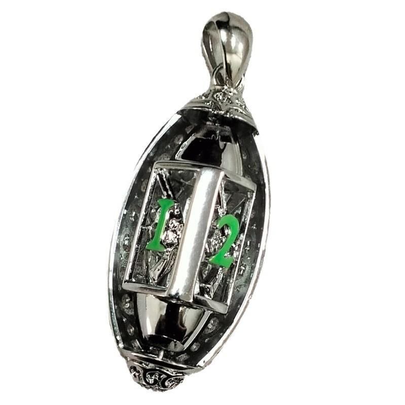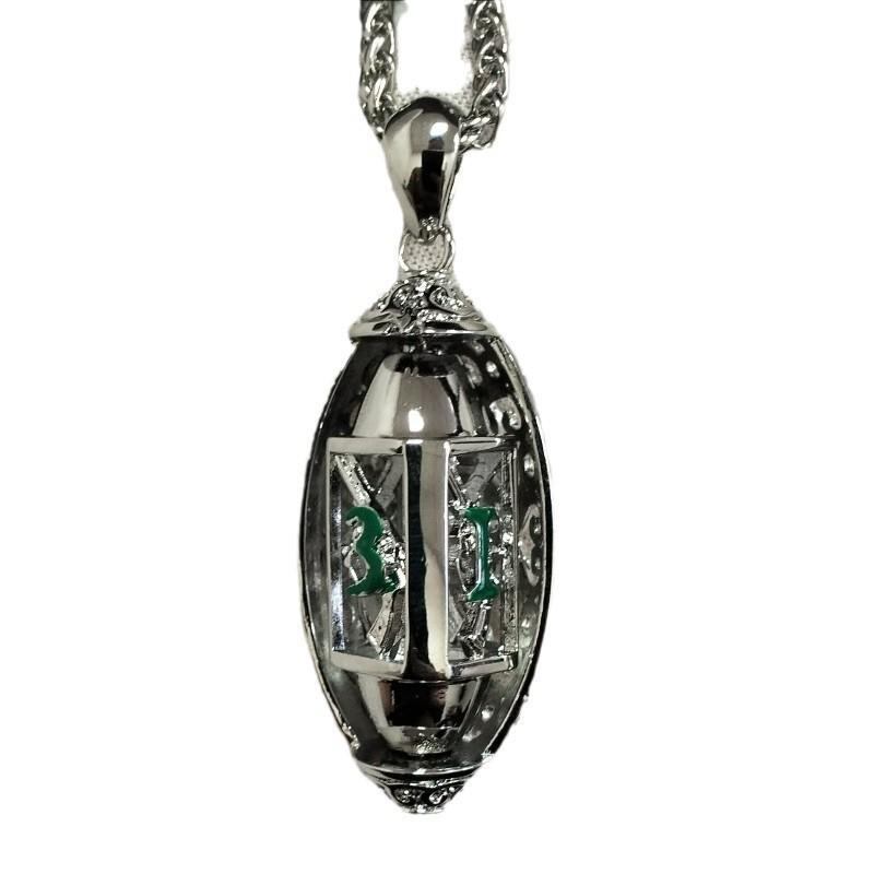 ペンダント D4ダイス 銃型 スケルトン 360度回転 真鍮製 TRPG ボードゲーム用 ゲーマー向け ネックレス ステンレスチェーン付属 プラチナカラー ゴールドカラー グリーン レッド