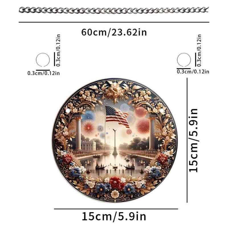 吊り下げオーナメント レトロ 記念 アメリカ国旗 愛国 丸型 アクリル 印刷 イベント ショーウィンドウ 玄関 ポーチ