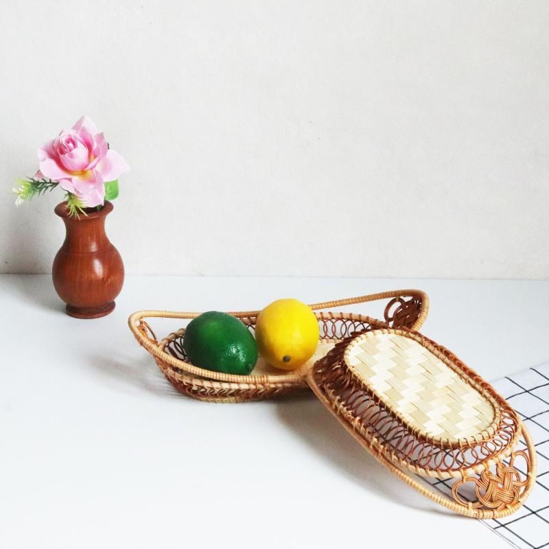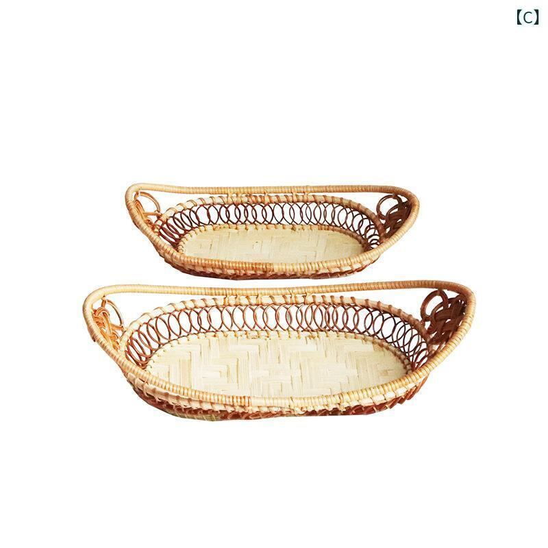 バスケット 秋冬 和風 楕円形 藤 ラタン パン フルーツ お菓子 収納 リビング 卓上 小物整理 かご トレイ