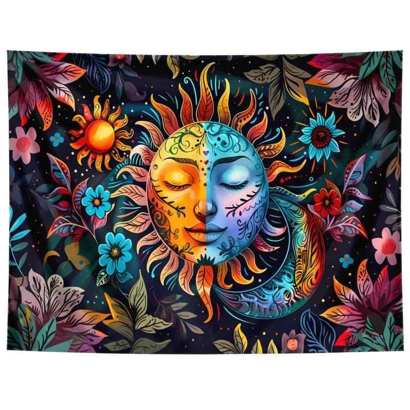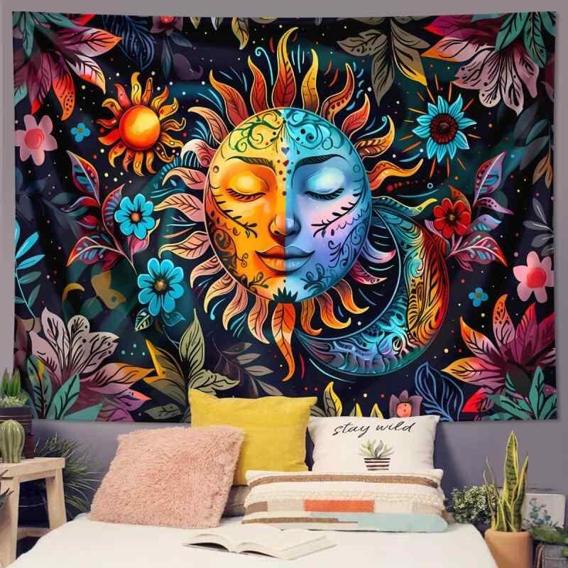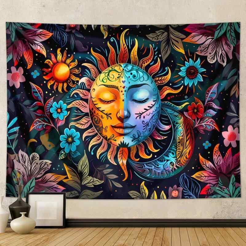タペストリー 太陽 月 植物 花 幾何学模様 抽象柄 北欧風 ポリエステル製 ウォールデコレーション インテリア 部屋飾り リビング 寝室 子供部屋 洗濯可