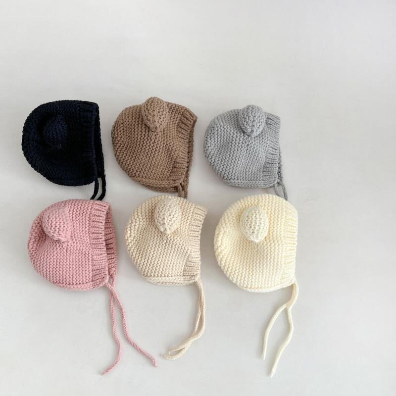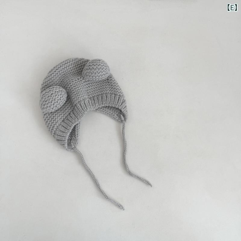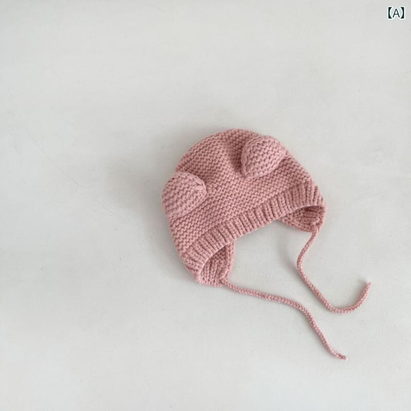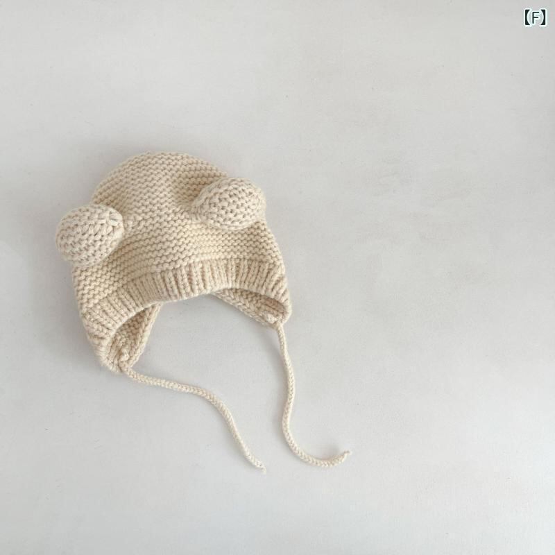 ニット帽 ベビー 男女兼用 インスタ風 かわいい 耳当て付き ボンネット アクリル 秋冬 防寒 保温 防風 ピンク ブラウン ベージュ ブラック グレー カーキ