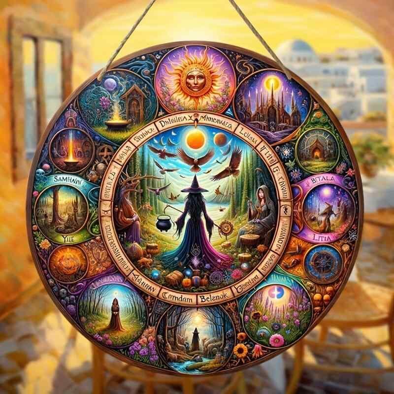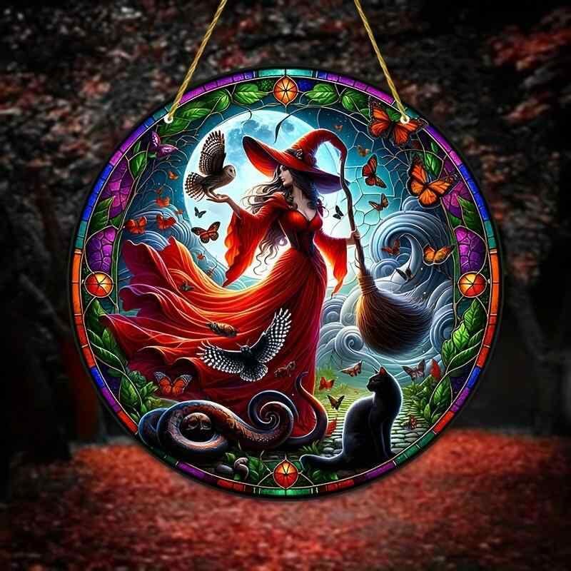 ハロウィン オーナメント 魔法使い 魔女 アクリル ディスク 魔法陣柄 窓 吊り下げ パーティー イベント デコレーション おしゃれ インテリア カラフル ゴールド紐