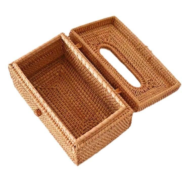 ティッシュケース ラタン製 ベトナム 手編み ハンドメイド リビング 洗面所 家庭用 収納ボックス おしゃれなインテリア雑貨 アメリカンカントリー レトロ調 ナチュラル 植物素材 卓上