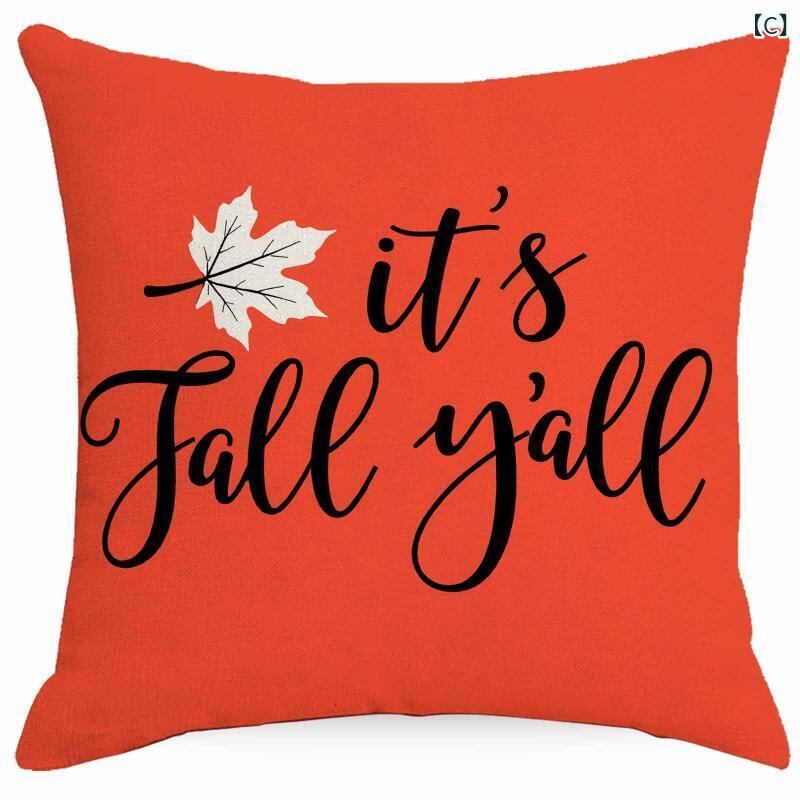 クッションカバー 秋 パンプキン アルファベット柄 麻 リネン 車 ソファ リビング ベッドルーム シンプルモダン 正方形 45×45cm