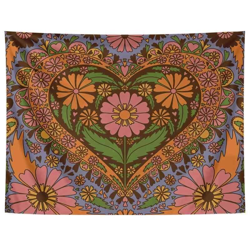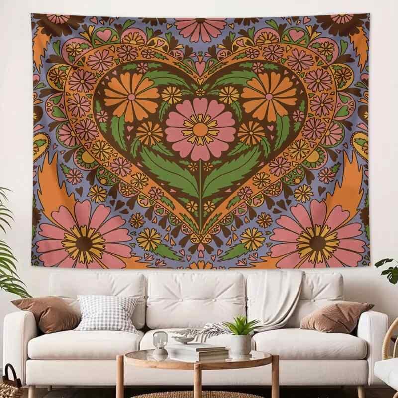 タペストリー ボヘミアン ハート 植物 花柄 北欧風 壁掛け インテリア リビング 寝室 書斎 ダイニング 壁飾り ポリエステル 長方形 幾何学模様