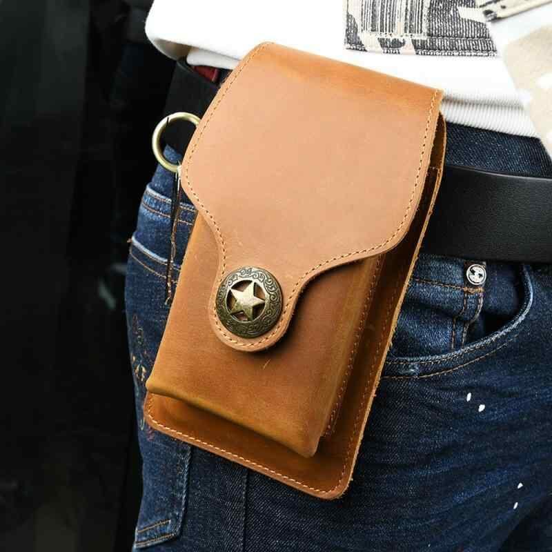 スマホポーチ メンズ 男性用 レトロ 本革 牛革 オイルレザー ウエストバッグ ベルトバッグ 縦型 マグネット開閉 カードポケット付き 大容量 普段使い
