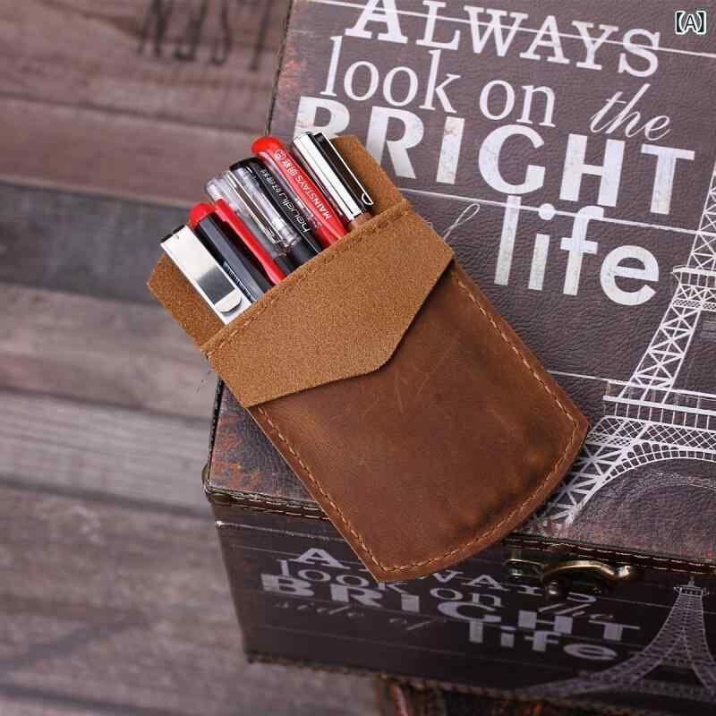 ペンケース 男女兼用 文房具 収納ケース ビジネス シャツポケット 万年筆 本革 保護カバー ハンドメイド ブラウン コーヒーブラウン ワインレッド