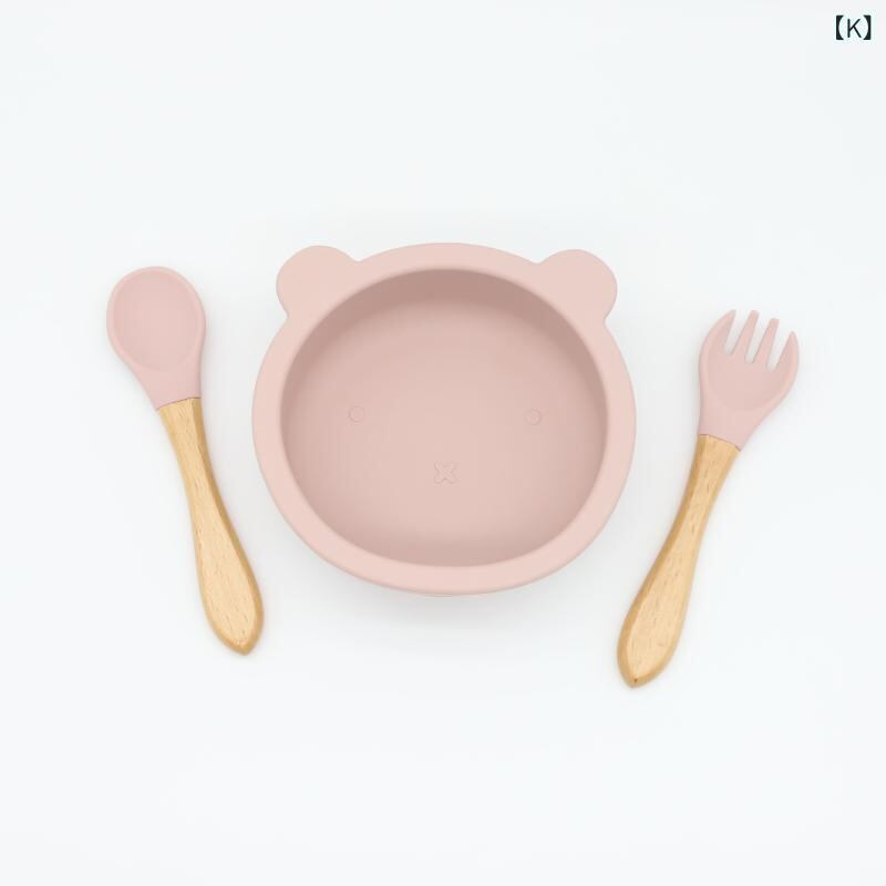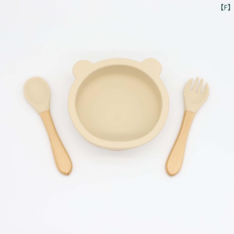 ベビー食器 子供用 離乳食トレーニング 食事セット かわいい クマ 吸盤付きボウル 木製持ち手 スプーン フォーク シリコン製 安全素材 お手入れ簡単 カラフル 生後3ヶ月から