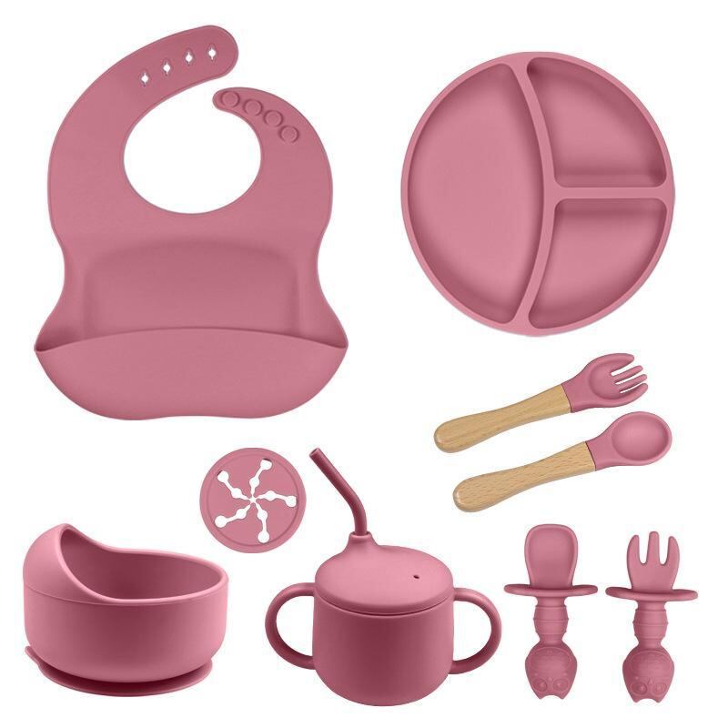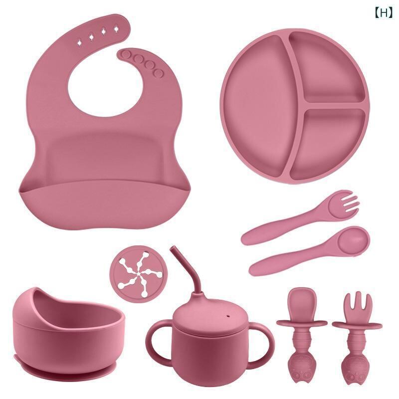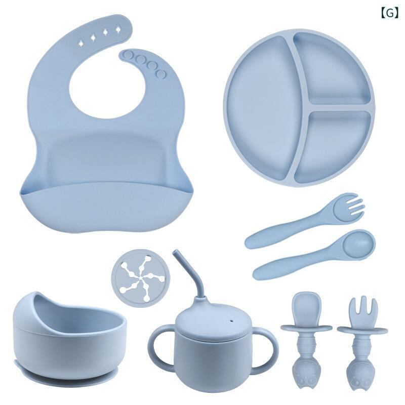 ベビー 離乳食 食器セット シリコン 子供 キッズ プレート ボウル フォーク スプーン スタイ お食事エプロン 9点セット 割れない 丈夫 滑り止め 食洗機対応 BPAフリー