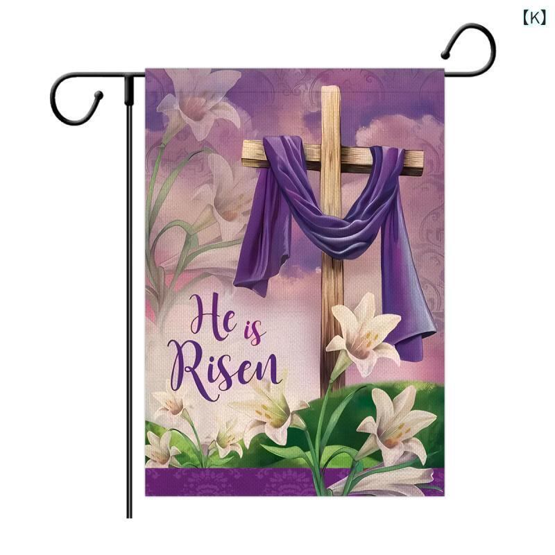 ガーデンフラッグ イースター 宗教 十字架 プリント ポリエステル 庭園飾り 屋外用 パーティー イベント 祝日 デコレーション