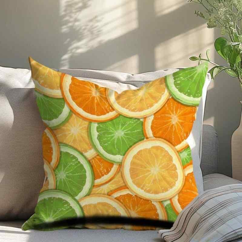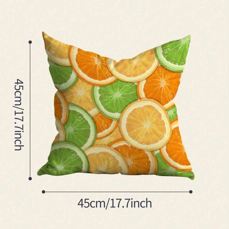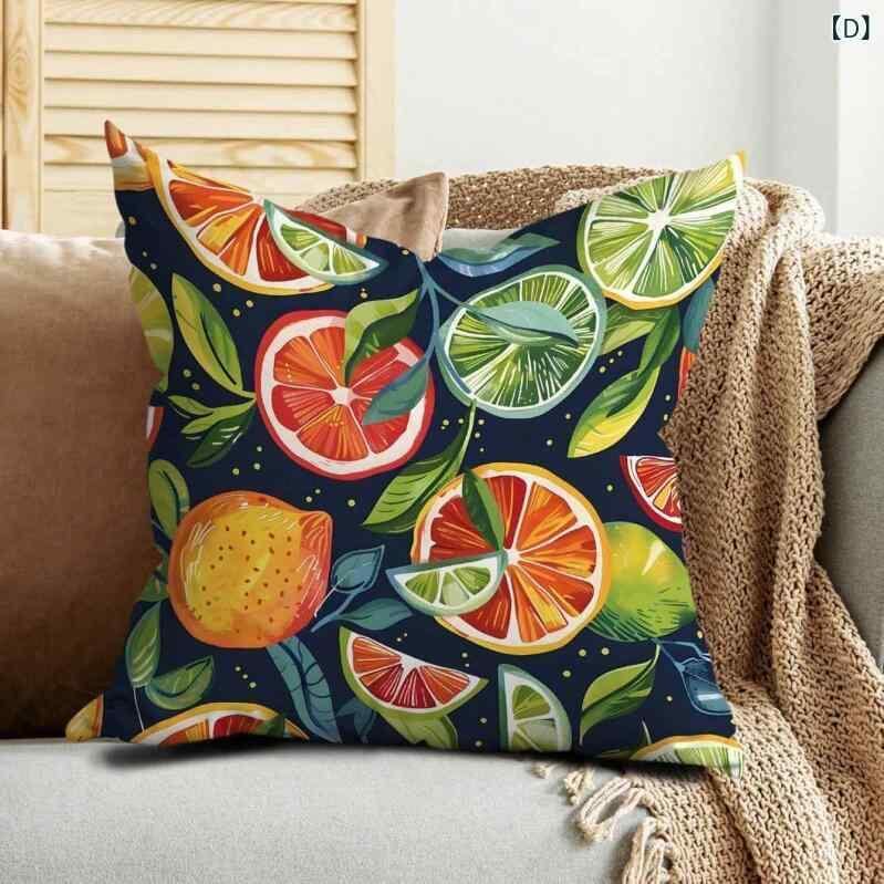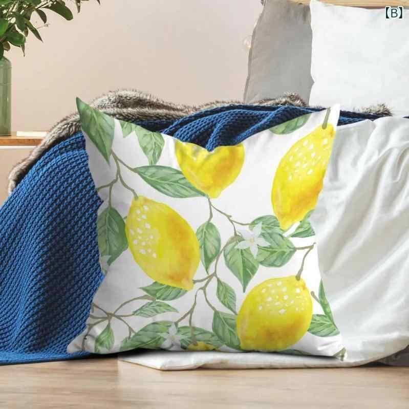 クッションカバー レモン柄 フルーツ柄 シトラスデザイン 45x45cm ショートベルベット ソファ リビング オフィス用 背当て 上質 インテリア 模様替え 爽やか リラックス 癒やし