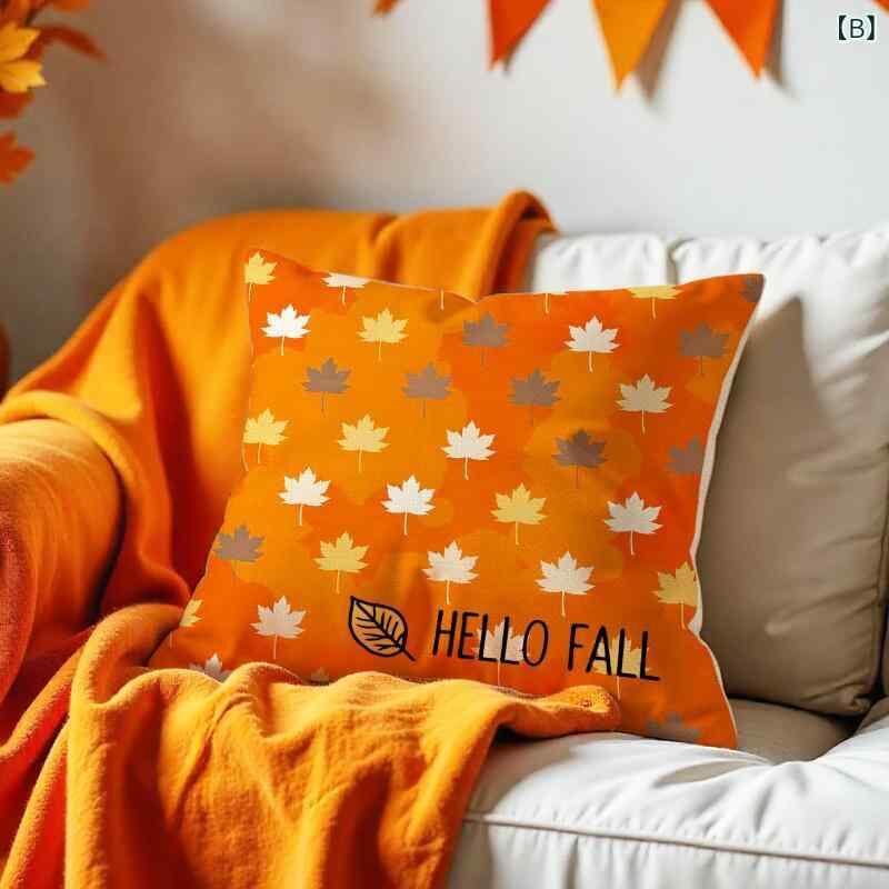 クッションカバー 秋冬 かぼちゃ パンプキン 楓 もみじ柄 リネン 麻 正方形 45cm角 ソファ用 抱き枕 チェアパッド インテリア リビング 高級感 ハロウィン 季節飾り