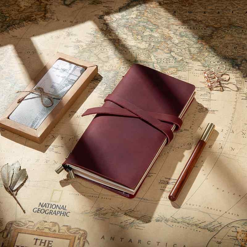 手帳 レトロ 本革 牛革 クレイジーホースレザー 結び紐付き ルーズリーフ 日記帳 ログブック ハンドメイド TN風 ヴィンテージ ミニサイズ 100g厚手紙 ブラウン