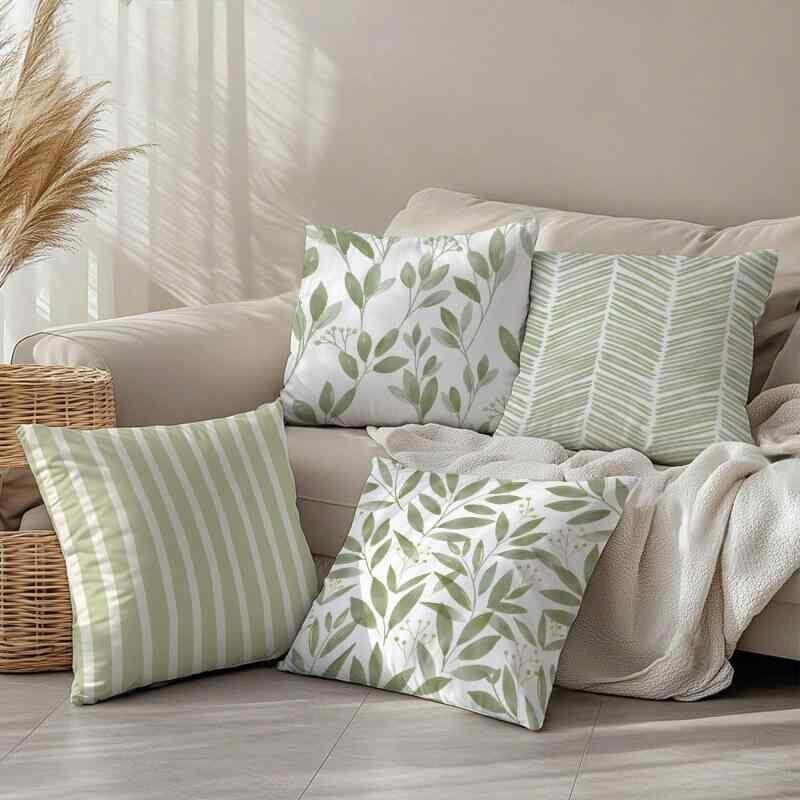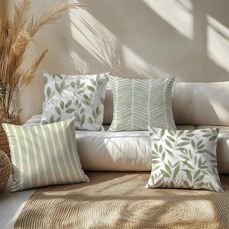 クッションカバー シンプル おしゃれ モダン ナチュラル ストライプ リーフ柄 ショートボア ソファ リビング インテリア 装飾 45×45cm
