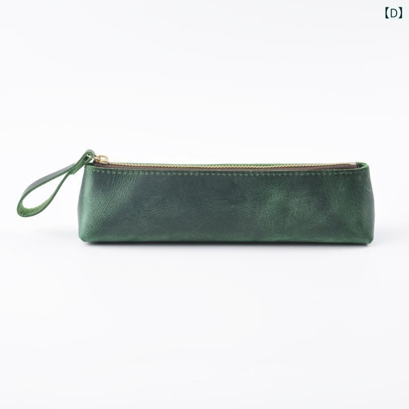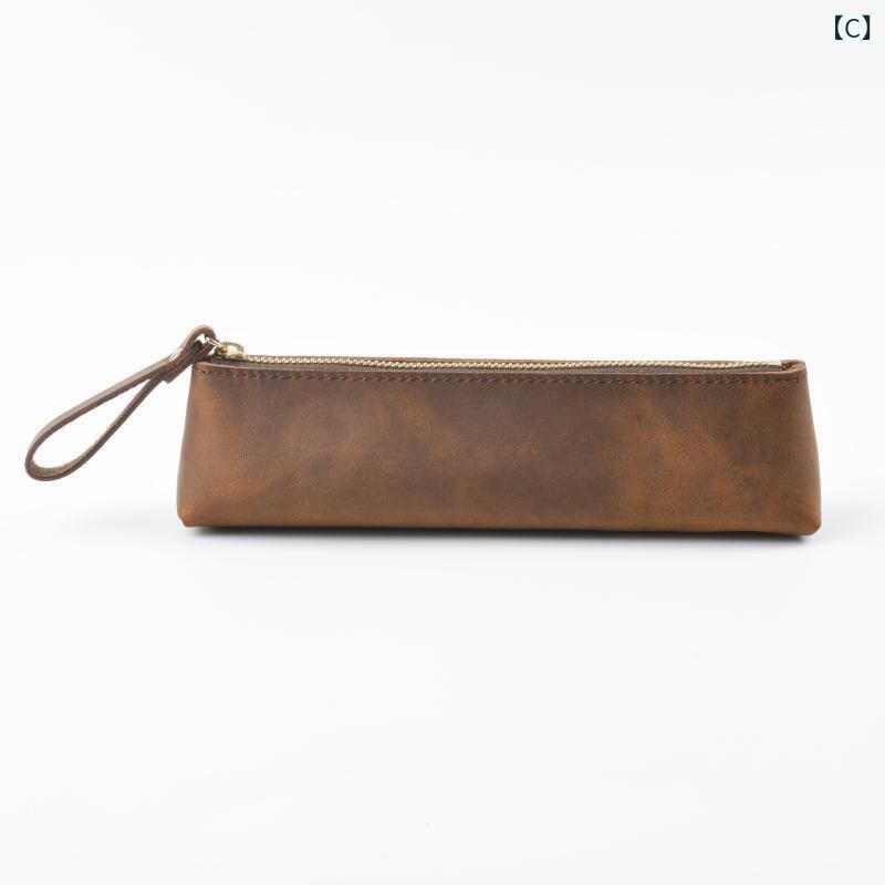 ペンケース 男女兼用 クレイジーホースレザー 本革 牛革 ファスナー 手作り おしゃれ レトロ ヴィンテージ 高級感 文具入れ オフィス ビジネス 普段使い 万年筆 収納ポーチ ブラウン ブルー