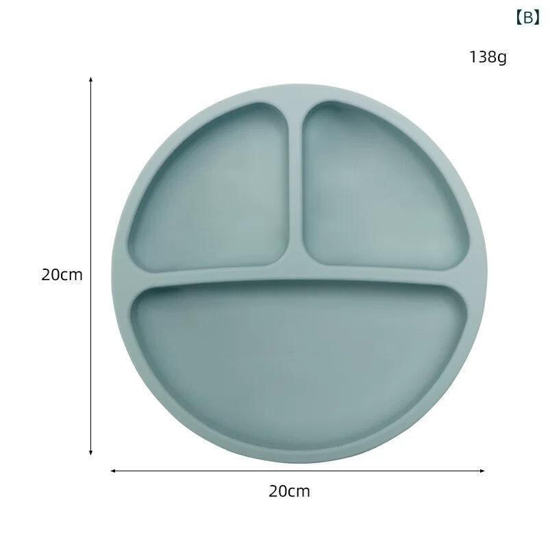 ベビー食器 シリコン プレート 丸型 3つ仕切り 吸盤付き 落下防止 滑り止め 離乳食 赤ちゃん 子供 グリーン ブルー ピンク