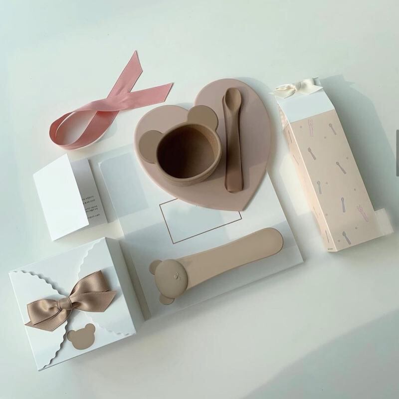 ベビー食器 ベビー 子供用 ins風 韓国風 シリコン 離乳食ボウル スプーン ランチョンマット セット クマ ウサギ 花 ハート型 落下防止 滑り止め 3ヶ月から