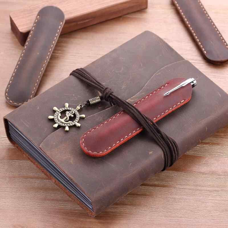 ペンケース ユニセックス 本革 クレイジーホースレザー 1本用 万年筆収納 ハンドメイド レトロ スリム 筆記用具入れ 高級感 コーヒー ブラウン ワインレッド