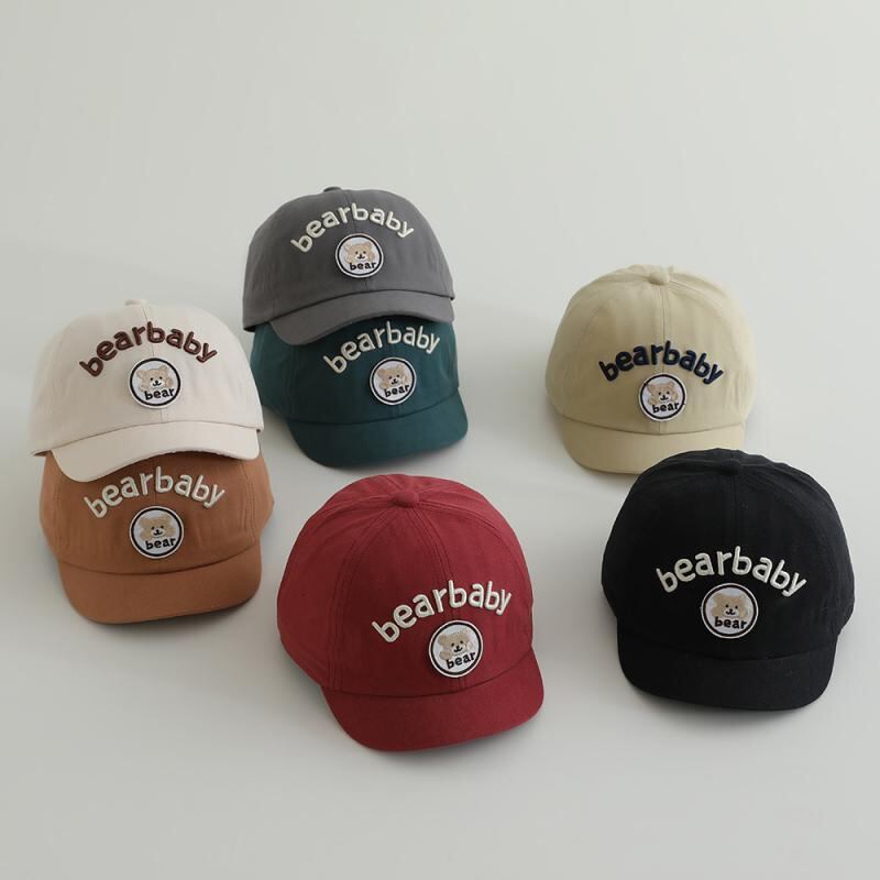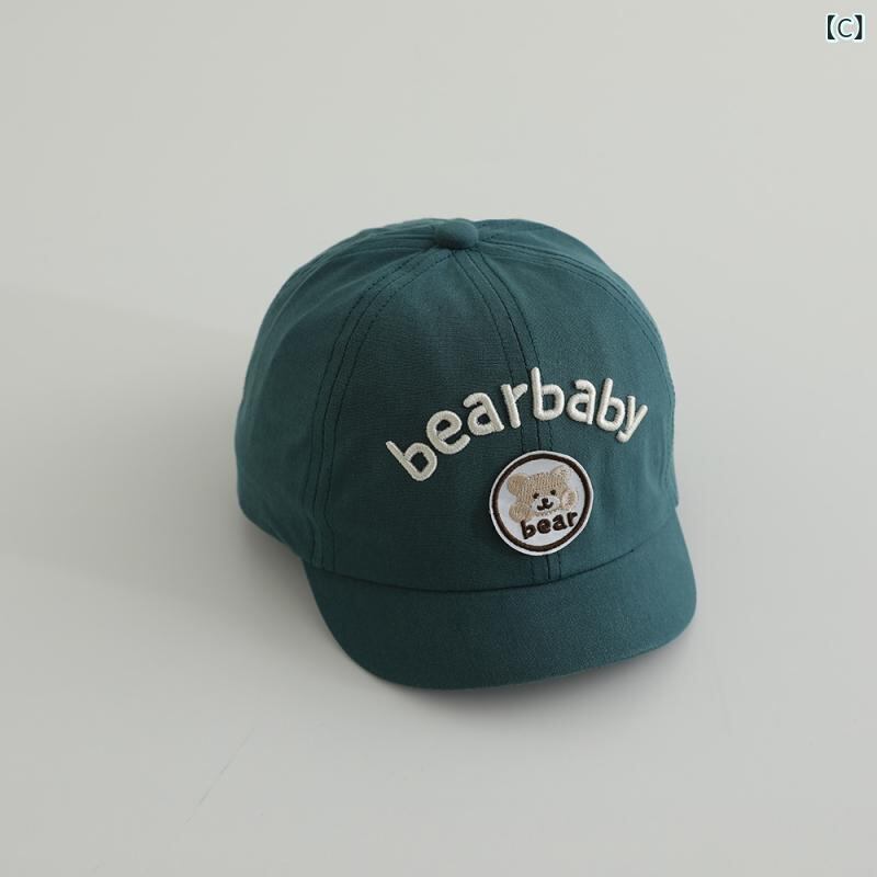 キャップ ベビー 男の子 キッズ くま かわいい ショートつば ベースボール 日よけ 春夏 コットン 綿 お出かけ 公園遊び 多色展開 キャラメル色 ホワイト