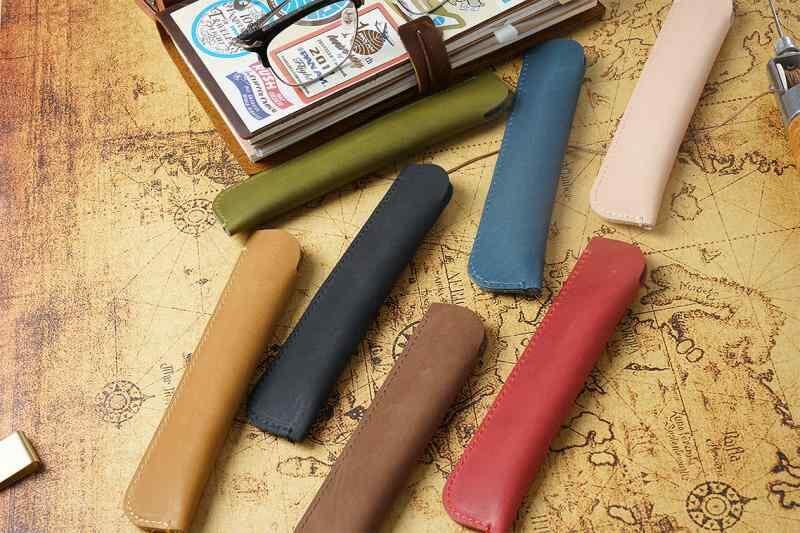 ペンケース 男女兼用 牛革 本革 レトロ調 万年筆用 ハンドメイド シンプルデザイン レザーペンポーチ 筆入れ 携帯用 筆記具 保護ケース
