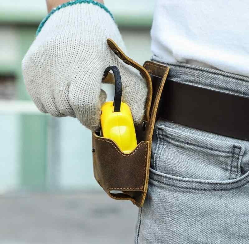 ウエストポーチ メンズ 牛革 レトロ 巻尺ケース イヤホンケース 作業用 DIY 携帯 ポータブル 小物入れ ベルトポーチ 本革 ブラウン
