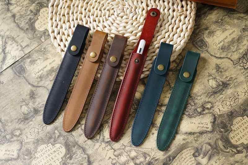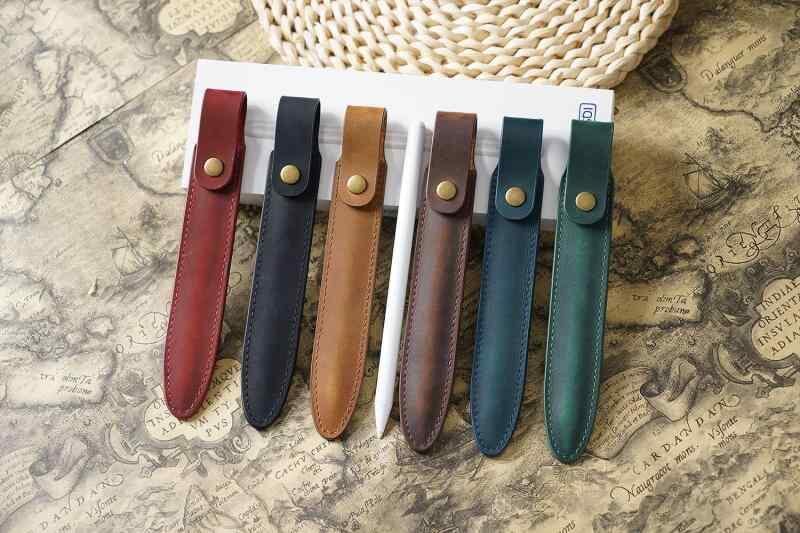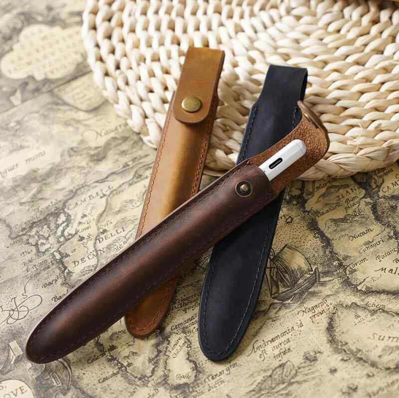 Apple Pencil 第2世代用 保護ケース 本革 クレイジーホースレザー 落下防止 耐衝撃 バックル付き スリーブ カバー シンプルデザイン ブラック ブラウン 多色展開