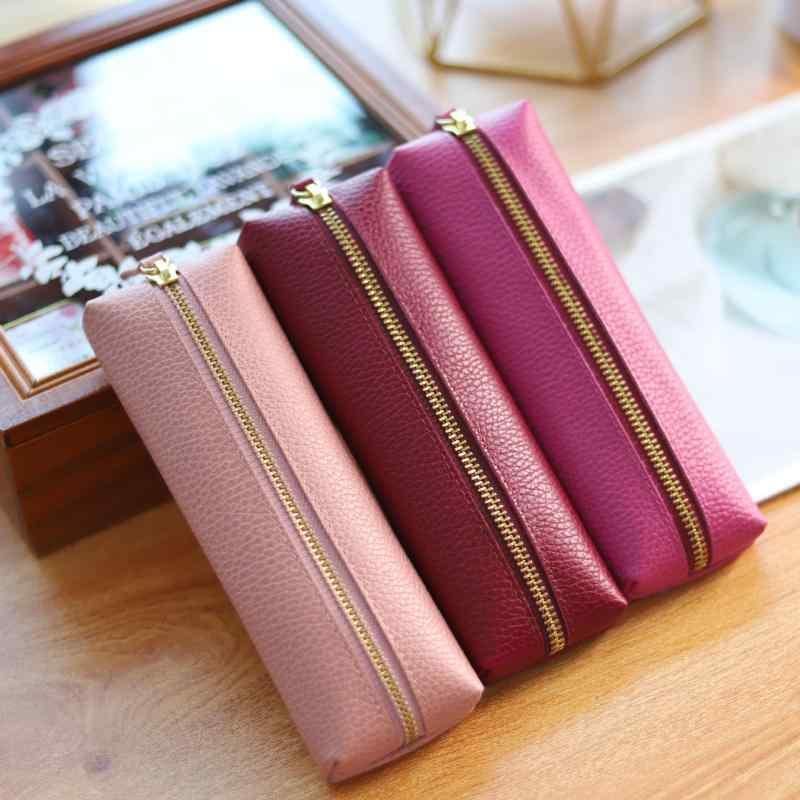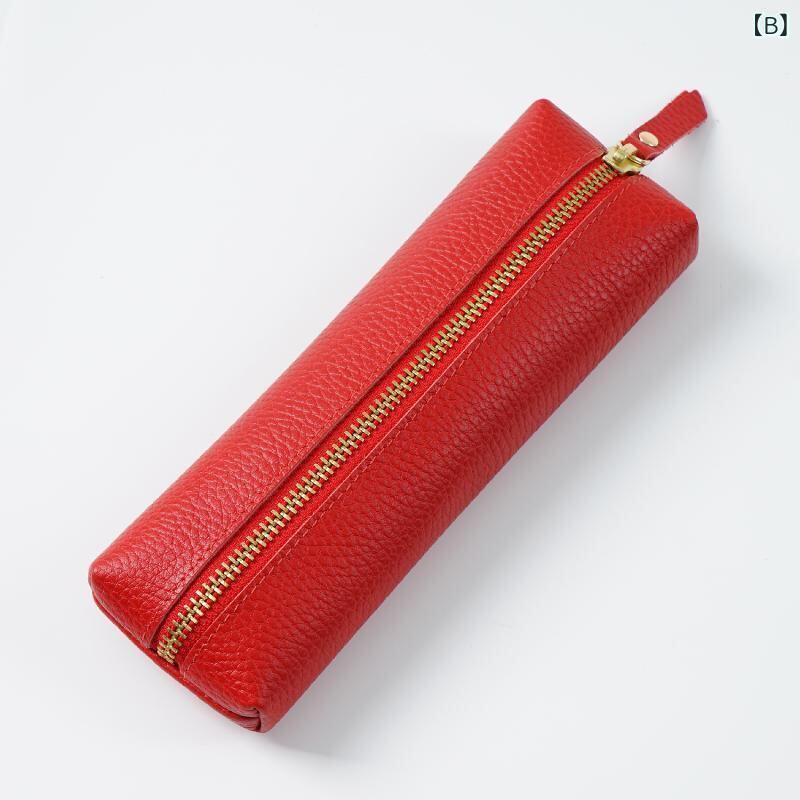 ペンケース 男女兼用 学生 牛革 本革 シボ加工 レザー シンプル おしゃれ ファスナー スリム 筆箱 文具入れ ポーチ 小物入れ 軽量 黒 赤 ピンク 紫 ローズ
