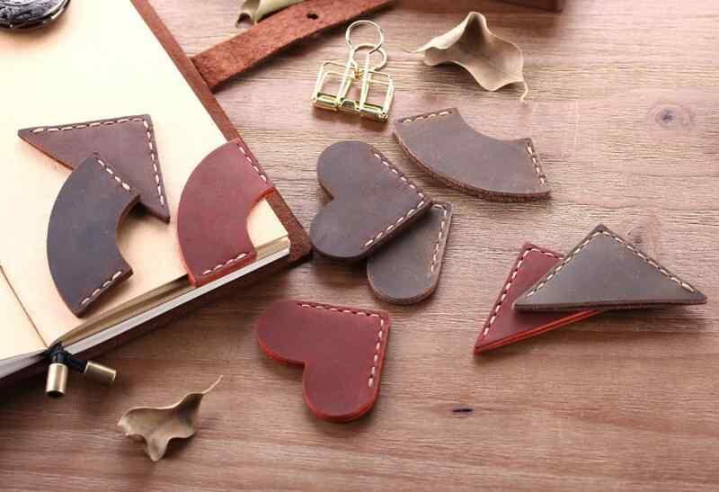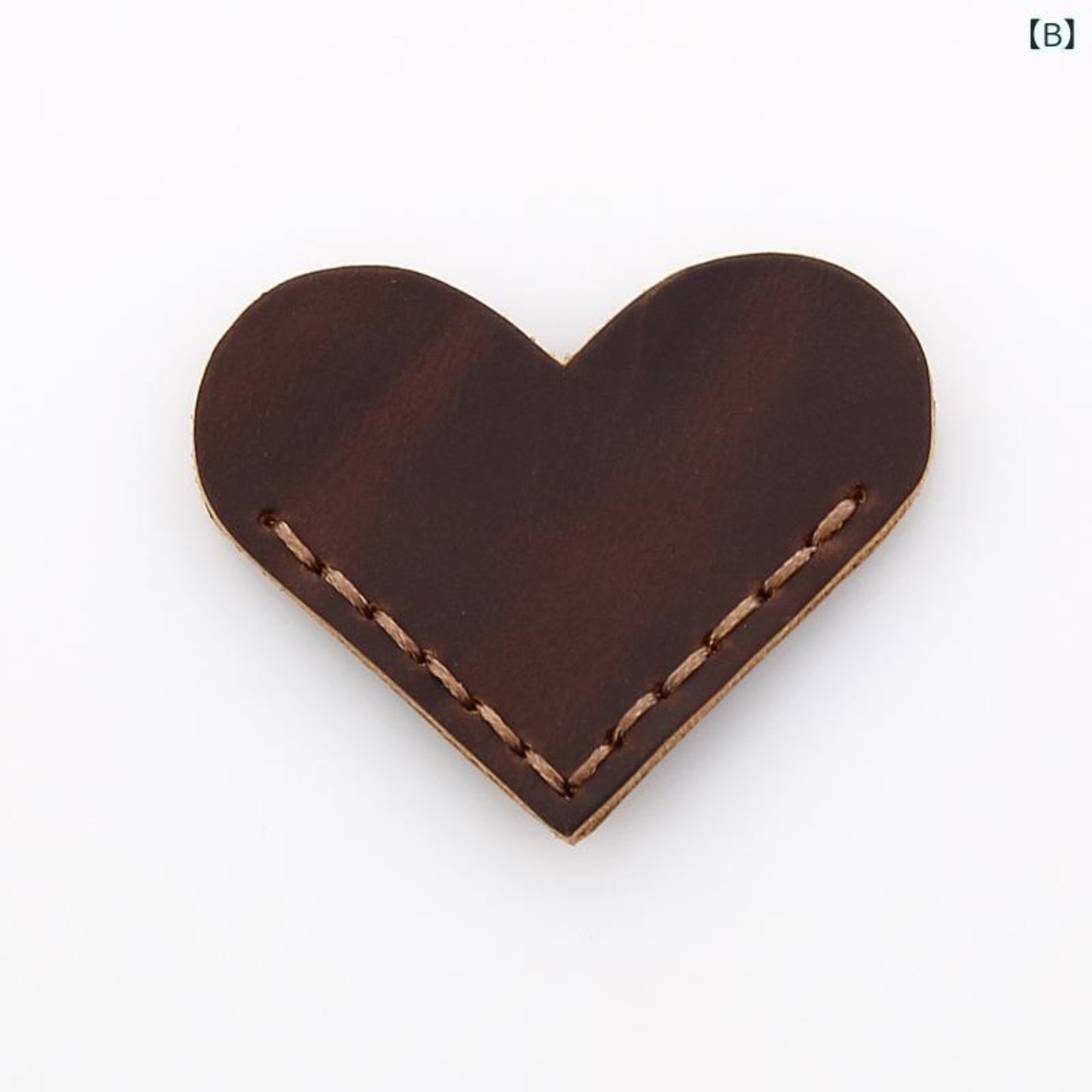 ブックマーク しおり 本革 牛革 クレイジーホースレザー 手縫い ハート型 シンプル レトロ おしゃれ DIY コーヒーブラウン ブラウン ワインレッド レザー製 読書 雑貨 プレゼント 贈り物