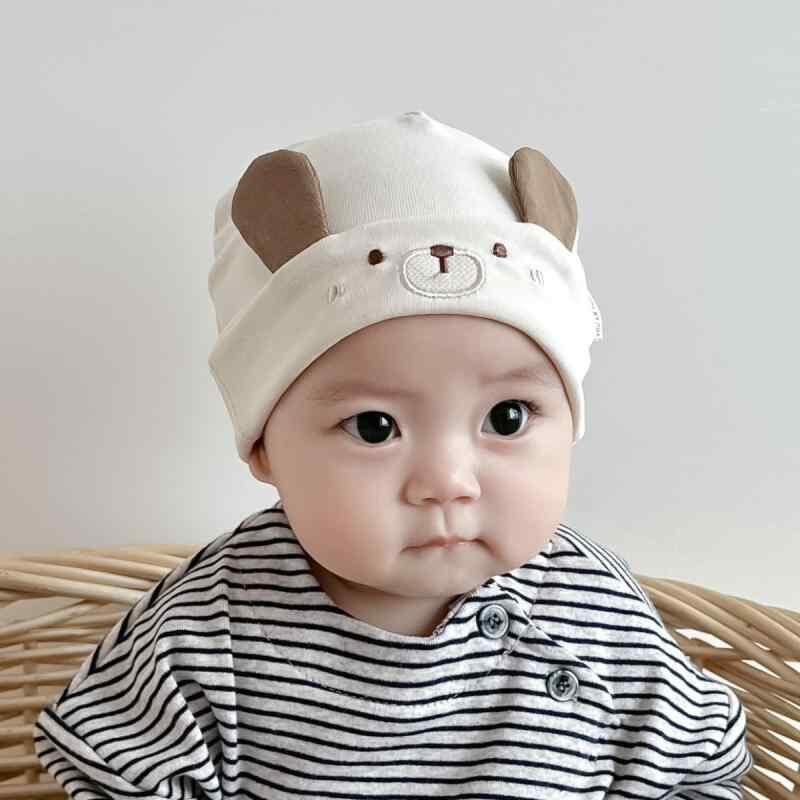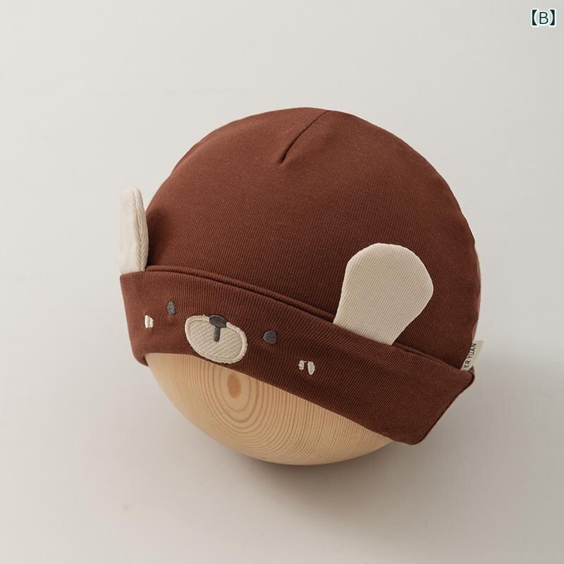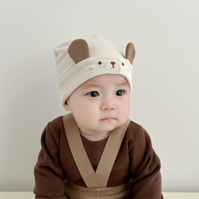 ベビー帽子 新生児 赤ちゃん用 綿 春秋 薄手 ダブルレイヤー キャラクター柄 かわいい 保温 頭部保護 通気性 日よけ キャップ アイボリー コーヒー カーキ 0-3ヶ月
