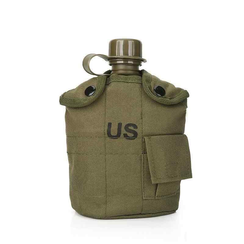 水筒 USタイプ ミリタリー 迷彩柄 アウトドア スポーツ 登山 キャンプ ハイキング サバイバル 弁当箱付き 丈夫 耐久性 ブラック カーキ グリーン