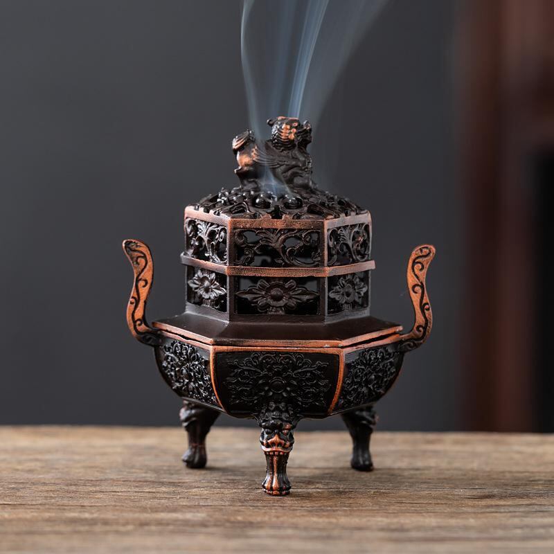 香炉 家庭用 室内用 モダンチャイニーズスタイル おしゃれ 合金製 ミニ 三本足 麒麟 祥雲柄 白檀 沈香 茶道 お香立て