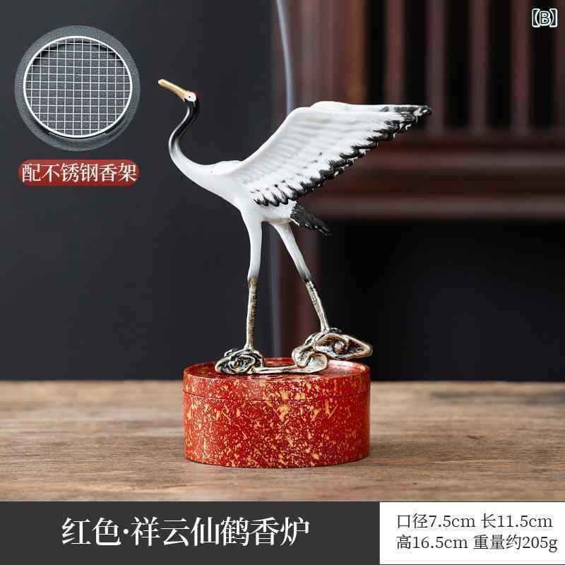 香炉 新中式 禅意 鶴 雲柄 飛鶴 卓上 置物 インテリア オブジェ 渦巻き線香用 沈香 檀香 お香立て 室内用 自宅用 リビング 寝室 癒し 銅製