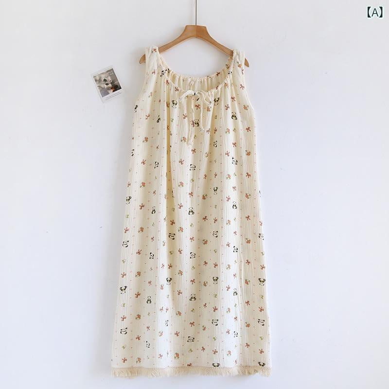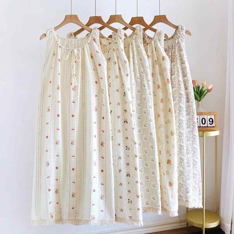 パジャマワンピース レディース 純綿 二重ガーゼ 薄手 通気性 涼しい 快適 キャミソールワンピース かわいい 大きいサイズ マタニティ ルームウェア ワンマイルウェア 春夏 ロング丈