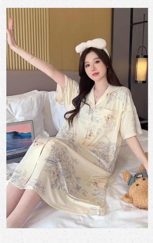 パジャマ レディース マタニティ モダール 春夏 薄手 前開き ワンピース 授乳服 産前産後 ルームウェア 吸湿速乾 伸縮性 軽量