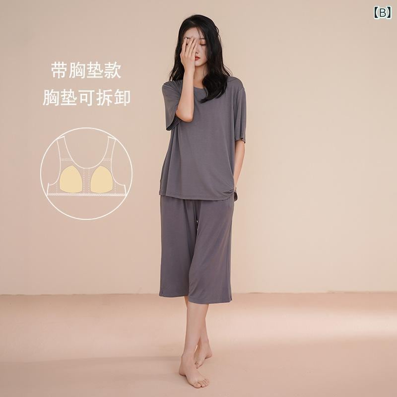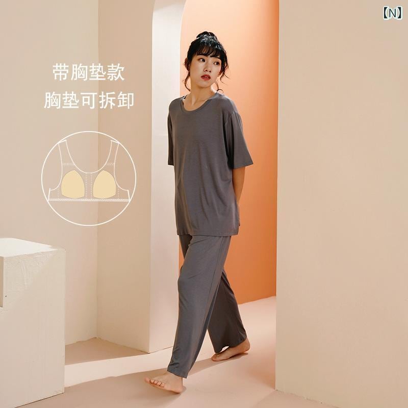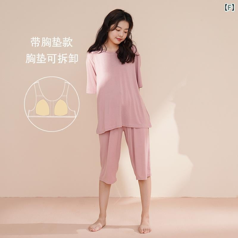 パジャマ レディース マタニティ 妊婦 モダール 吸湿速乾 伸縮性 カップ付き 半袖 七分丈パンツ クロップドパンツ お腹サポート 調節可能 産後 産褥期 入院準備 ルームウェア 部屋着 春夏