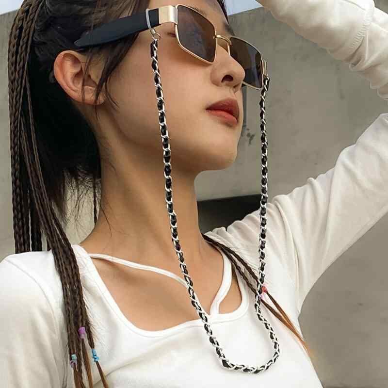 眼鏡チェーン レディース 個性的 ヒップホップ パンクスタイル メタル製 細身 グラスコード サングラス用 PUレザー ラップデザイン ファッション小物