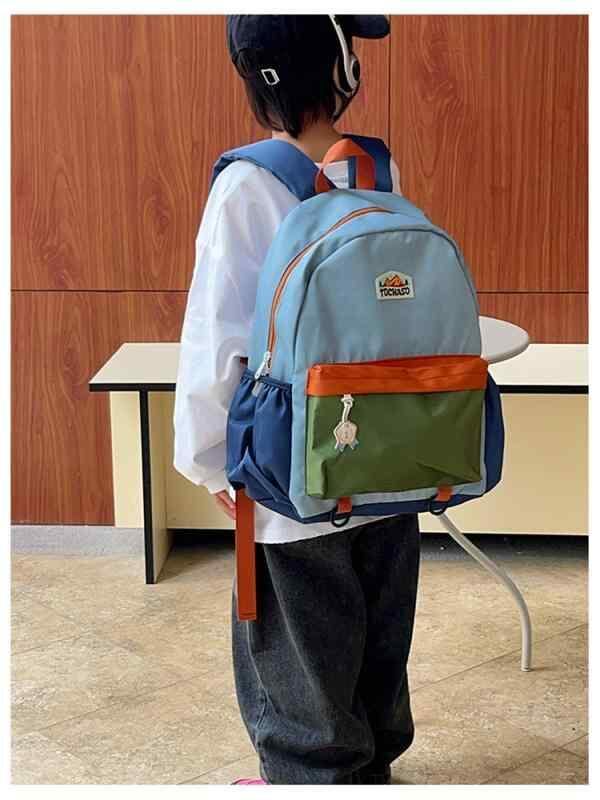 ・性別: 男女兼用・スタイル: モダンクール・素材: オックスフォード生地・裏地: ポリエステル・柄: 幾何学模様・流行要素: 配色切り替え・機能: 収納可能・適用シーン: 日常使い・対象: 幼児・カラー展開: ベージュ、ブルー、オレンジ、イエロー・サイズ展開: S、M、L
