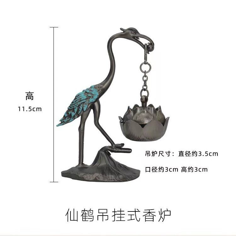 香炉 鶴 蓮モチーフ 祥雲 吊り下げ式 渦巻き香 合金製 おしゃれ 家庭用 インテリア置物 縁起物 アジアン 中華風 風水 オブジェ 癒し空間 リラックス
