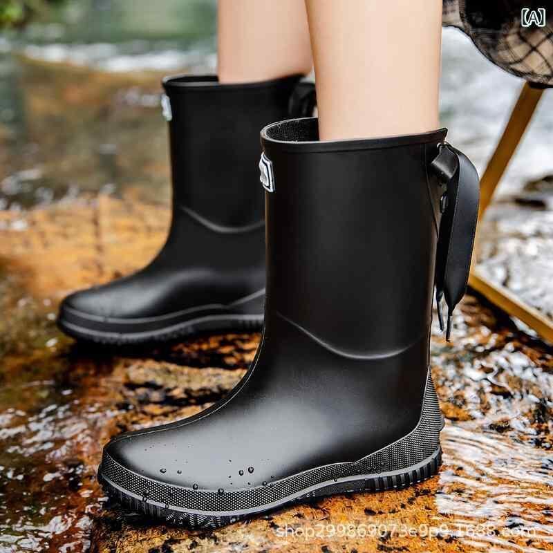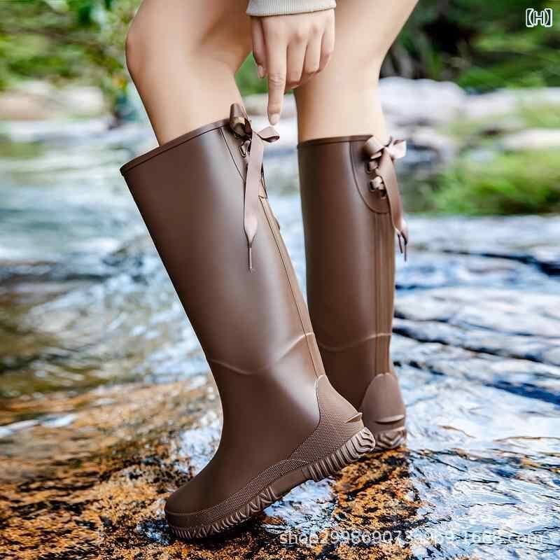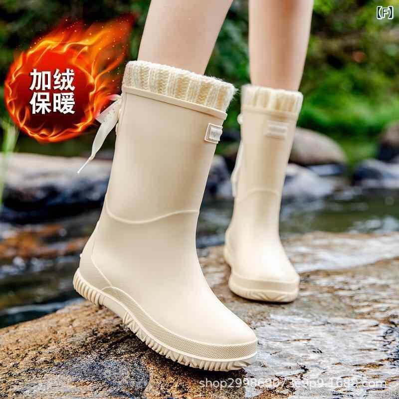 レインブーツ レディース 女性用 韓国ファッション ミドル丈 ロング丈 防水 防滑 レースアップ PVC素材 作業用 キッチン 普段使い 厚手 フラットヒール 取り外し可能インナー ブラック ブラウン ベージュ