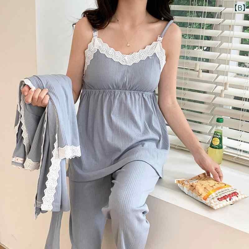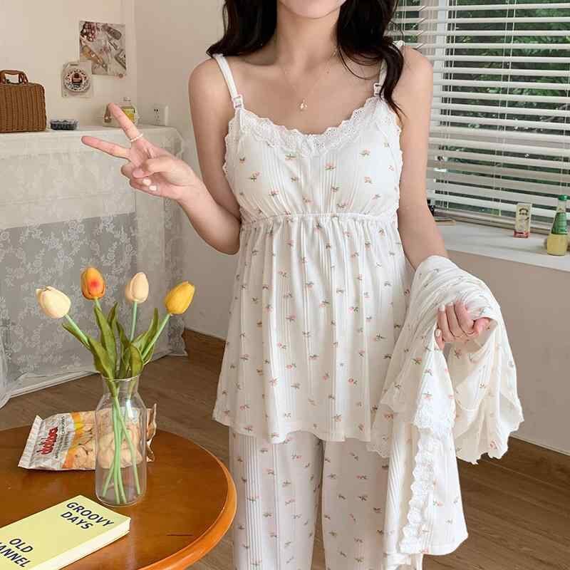 パジャマ レディース マタニティ 授乳服 産後 3点セット キャミソール 長袖 ガウン Vネック コットン ニット 春夏 ルームウェア 部屋着 快適 出産準備 入院