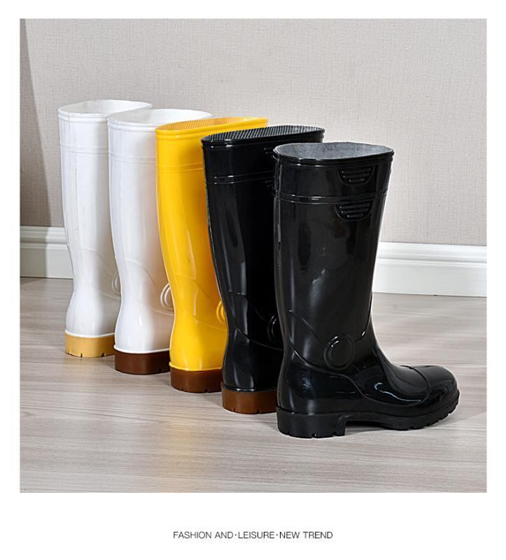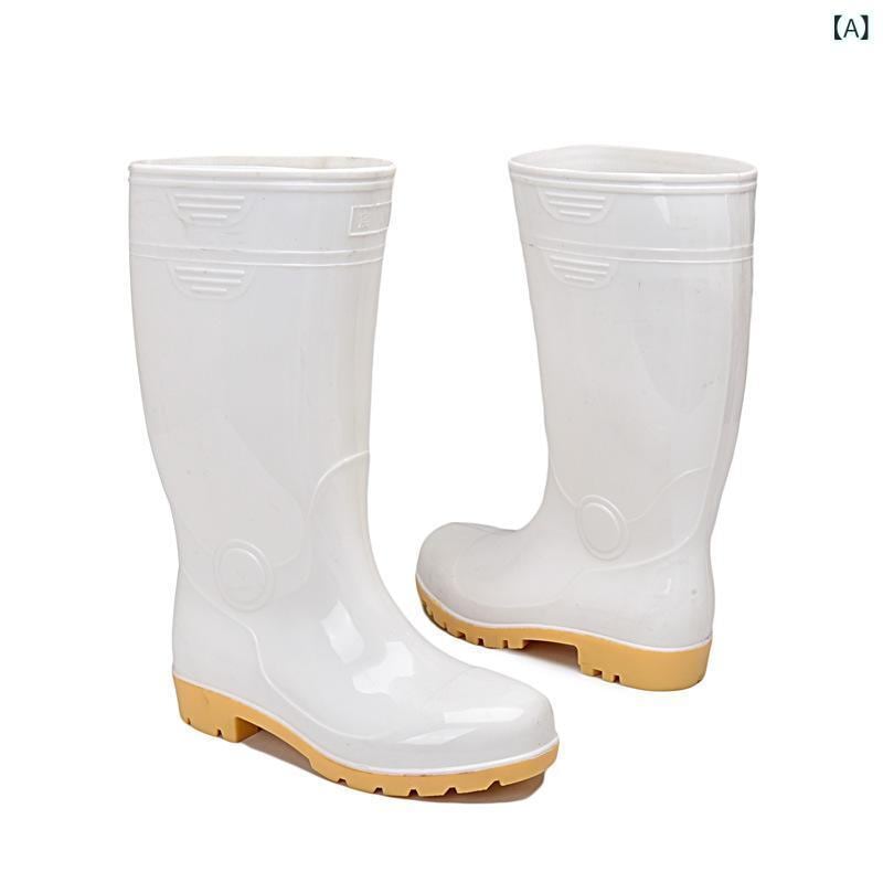 レインシューズ 長靴 メンズ 安全靴 作業靴 男性 農作業用 厨房用 食品加工用 防水 ウォータープルーフ 防滑 滑り止め 耐摩耗 ゴム底 厚底 ロング PVC製 ホワイト 無地 スリッポン